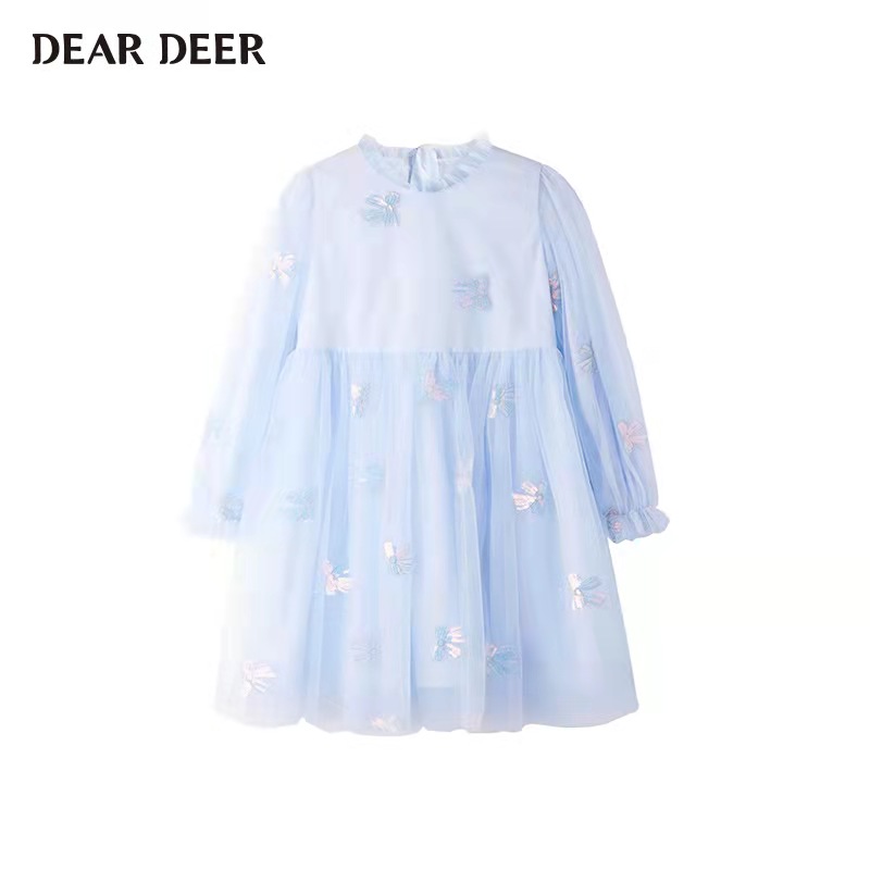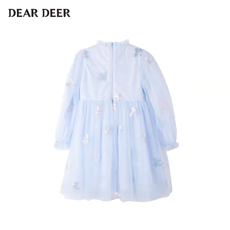 迪迪鹿蝴蝶珠片立领网纱长袖连衣裙女大童 返回首页 返回商品页