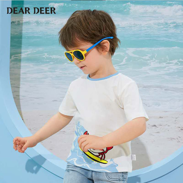 迪迪鹿男小童2020趣味简约印花短袖T恤