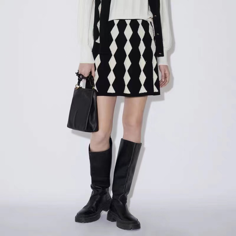 the MSLAN2022春款设计师款毛织短裙A字高腰半身裙