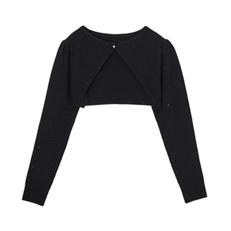 the MSLAN2022春款黑色圆领长袖毛织套衫