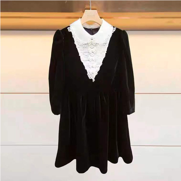 卓雅2021冬新款宫廷凤丝绒蝴蝶结气质收腰连衣裙