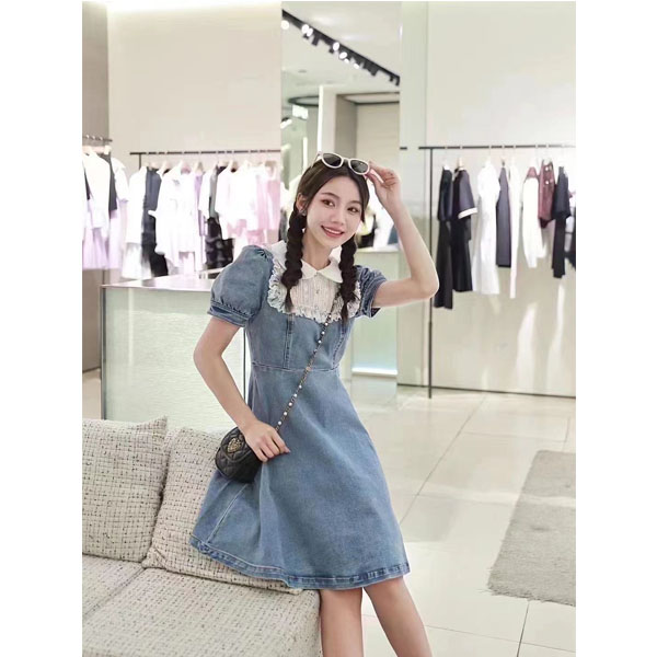 AIVEI2022夏季新品显瘦复古法式气质甜美牛仔连衣裙