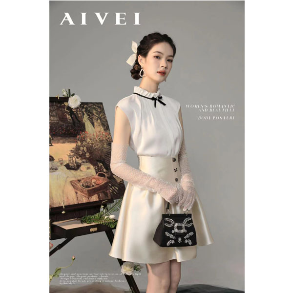 AIVEI2022夏款新品高级感修身半身裙显示高腰复古A字精致短裙