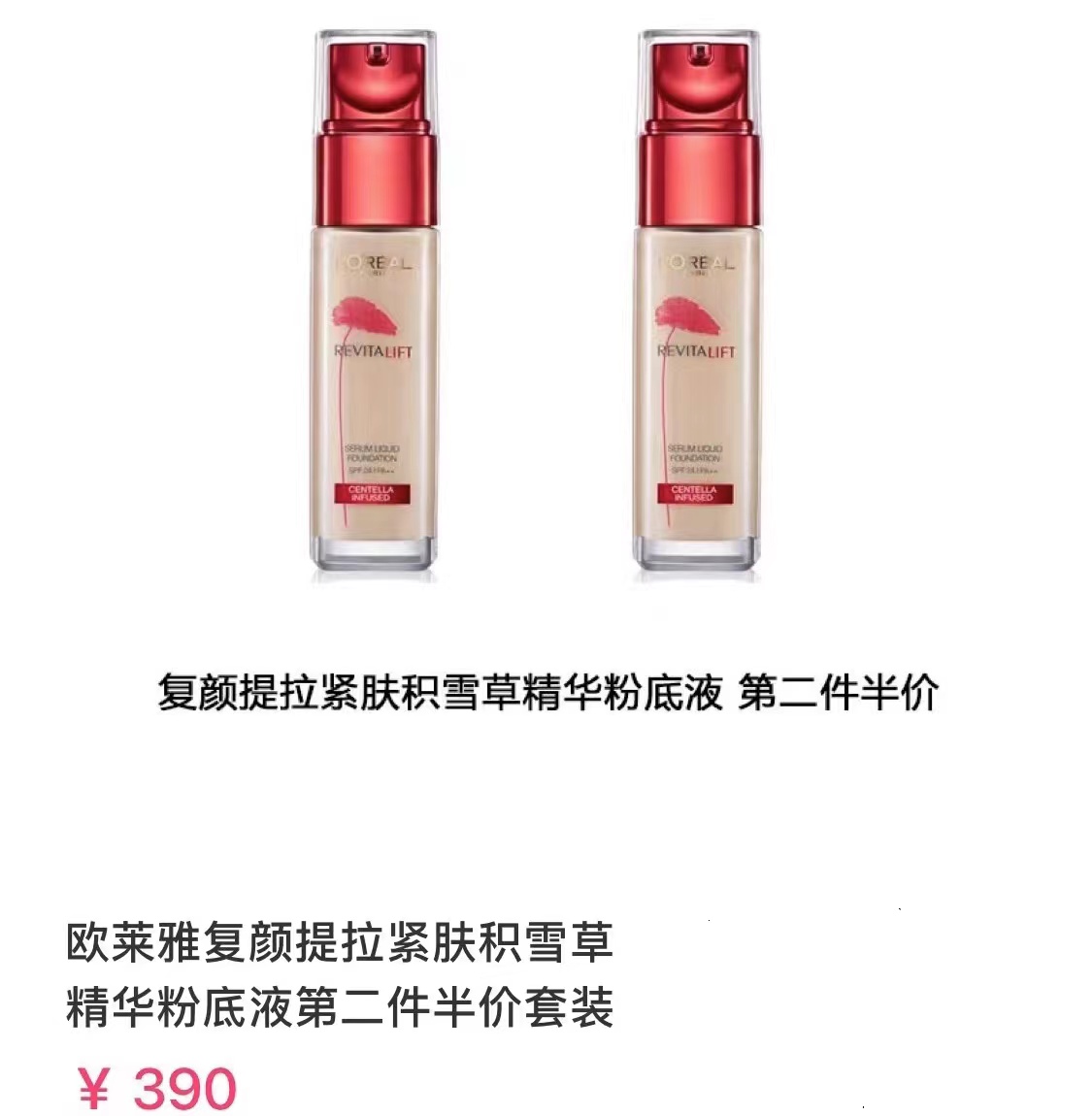 欧莱雅复颜提拉紧肤精华粉底液30ml*2瓶