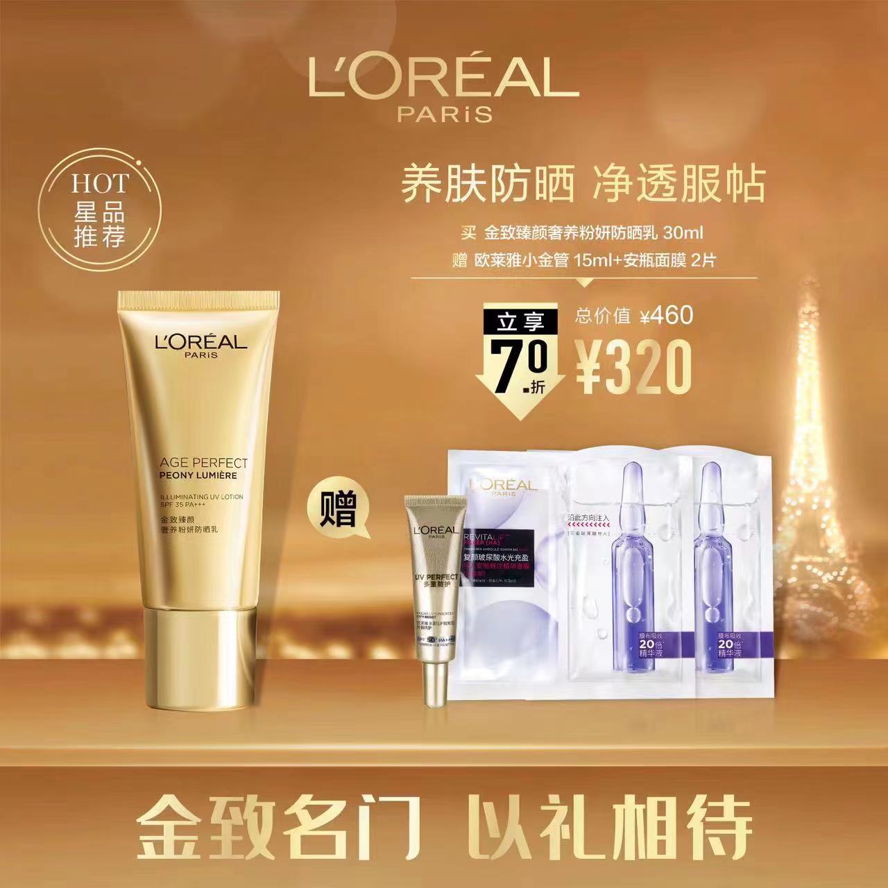 欧莱雅金致臻颜奢养粉妍防晒乳30ml(约5折)