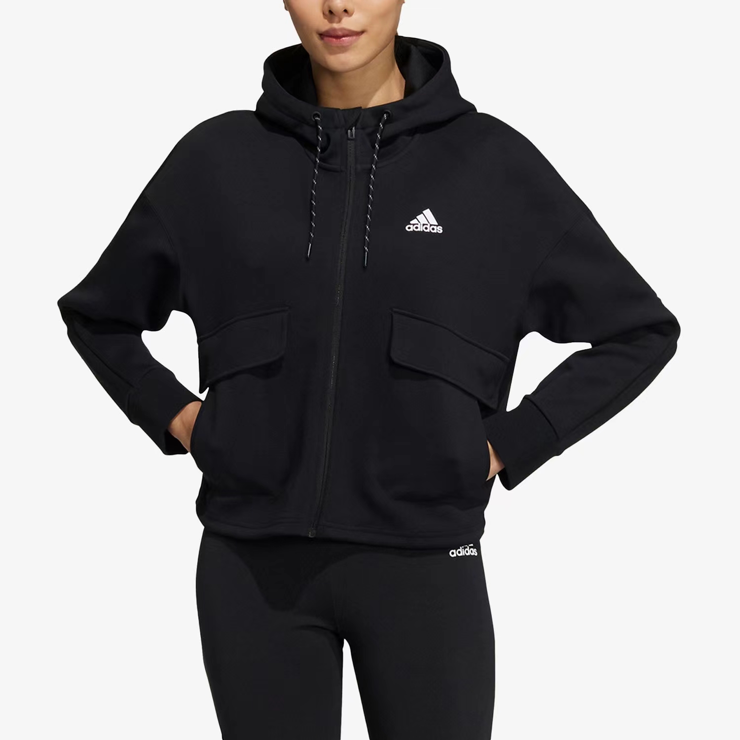 阿迪达斯女装秋季新款运动休闲外套跑步宽松连帽夹克H07375