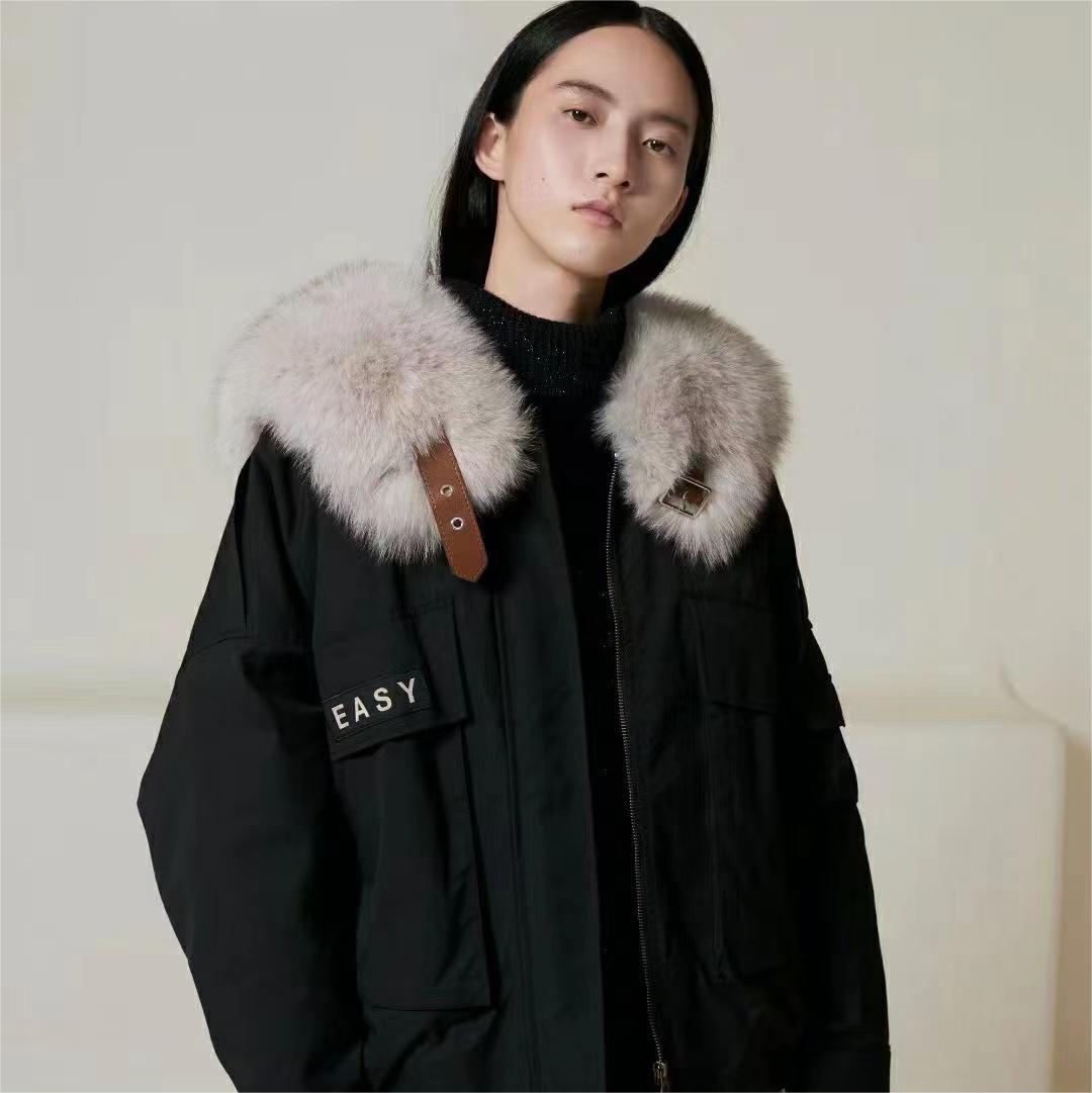 3COLOUR派克羽绒服 狐狸毛领—90白鸭绒