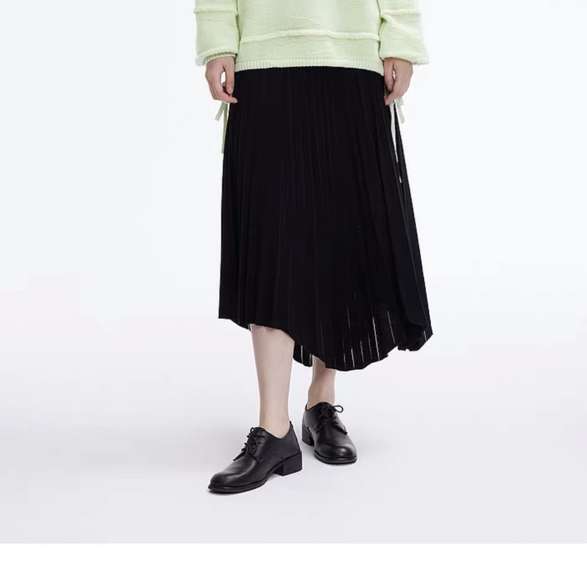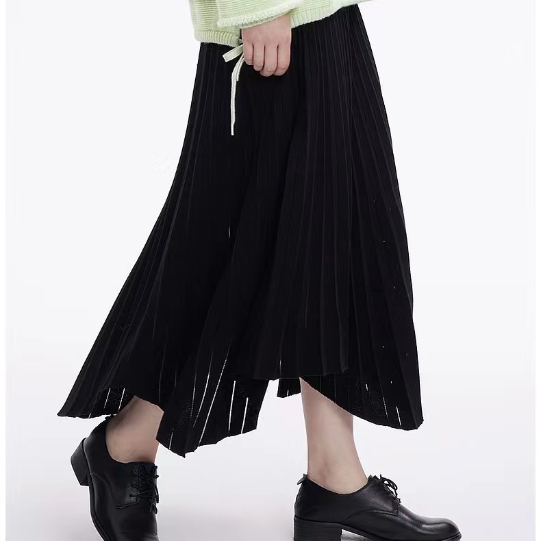 播新款休闲百褶不规则小众设计宽松百搭半裙
