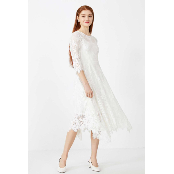 Vero Moda2020春夏新款圆领七分袖蕾丝长裙连衣裙女|32027C513