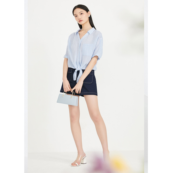 Vero Moda2020春夏新款ins风条纹系带五分袖衬衫女|32026X516