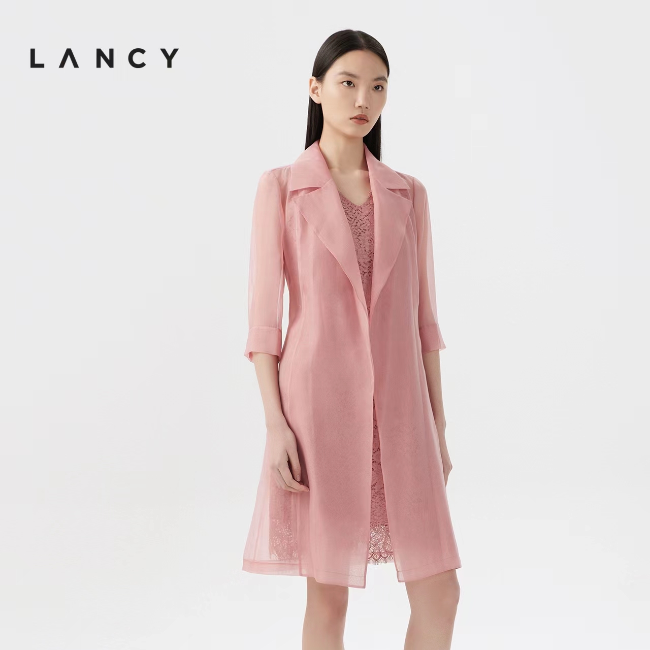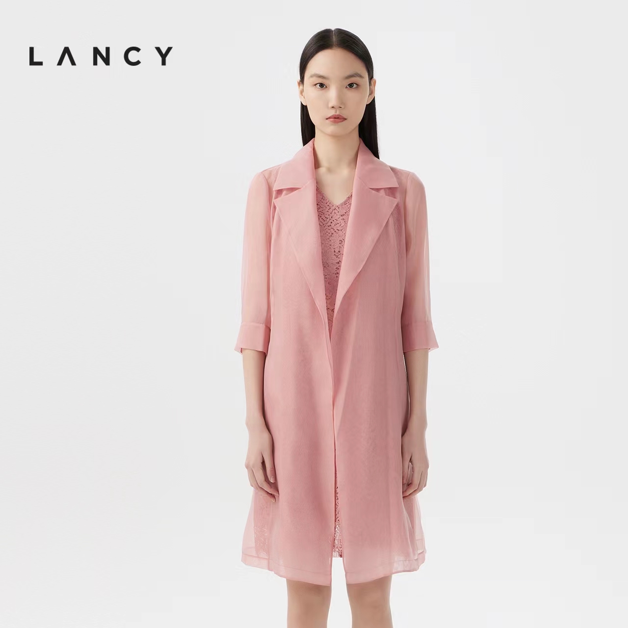 朗姿夏季两件套内搭蕾丝连衣裙