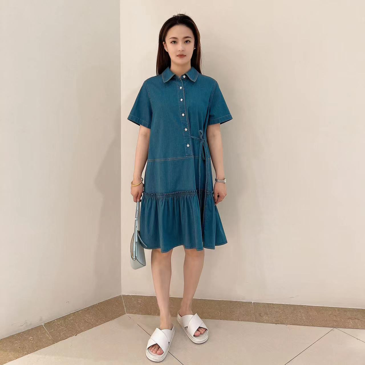 【土壤牛仔】ICICLE之禾女装2023夏季新款斜纹棉弹牛仔抽褶连衣裙