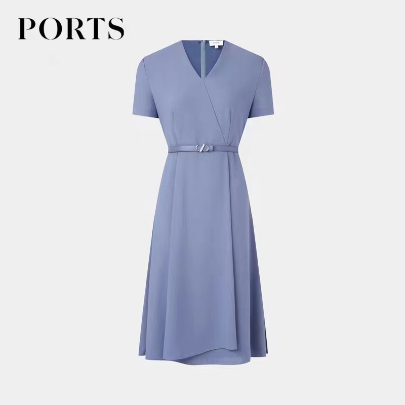 宝姿雾霾蓝紫不规则叠片连衣裙