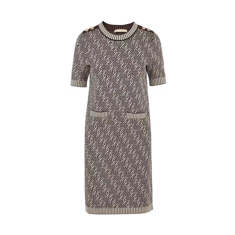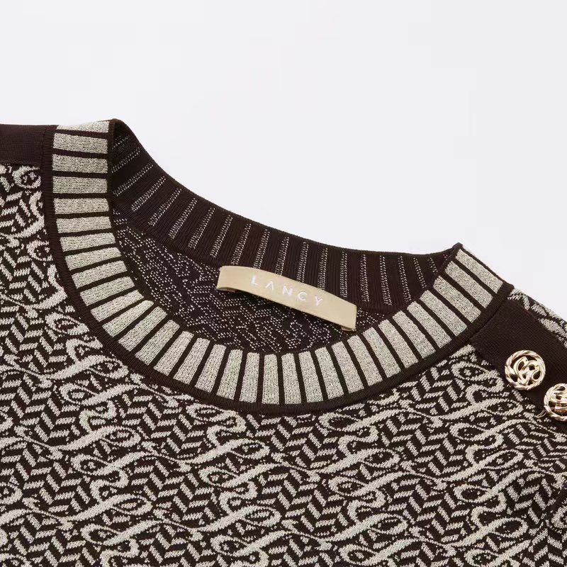 朗姿服饰新款收腰显瘦圆领高级感连衣裙