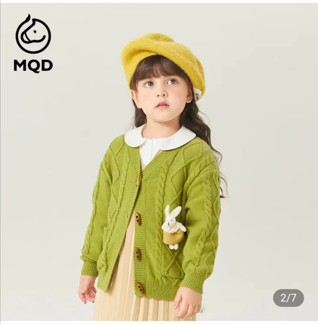 马骑顿女小童秋季清新亮丽立体装饰针织开衫