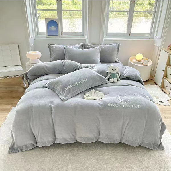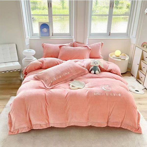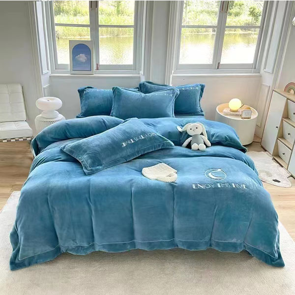 维科素色绣花即暖绒四件套