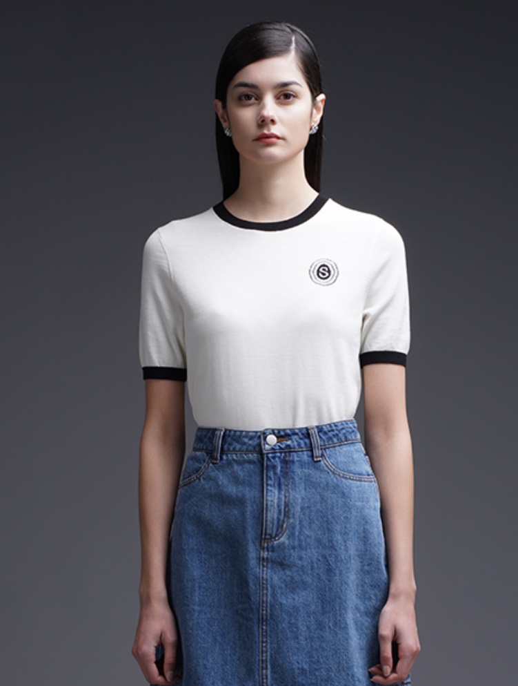 三石一澜圆领短袖平纹针织