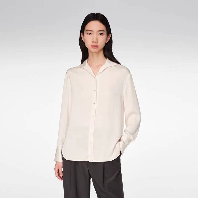 OVV三醋酸翻领设计白蝶贝纽扣长袖衬衫