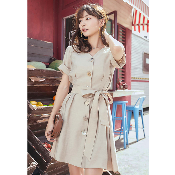 Vero Moda2020春夏新款V领收腰连衣裙|32016Z524