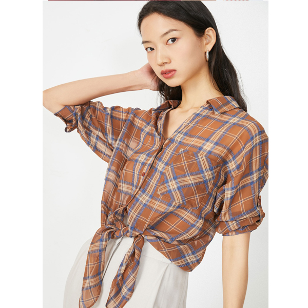 Vero Moda2020春夏新款系带底摆透视格纹衬衫|320231579