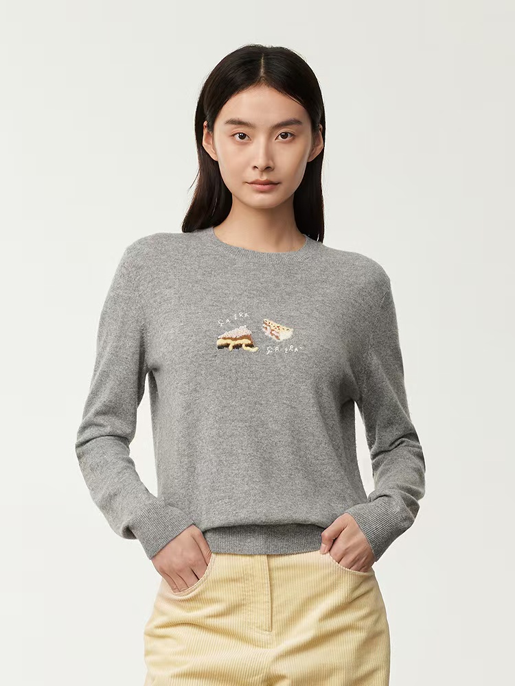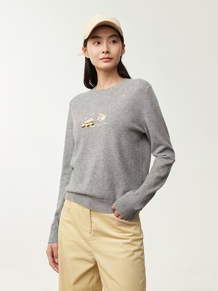鄂尔多斯1980女毛绒提花刺绣套衫