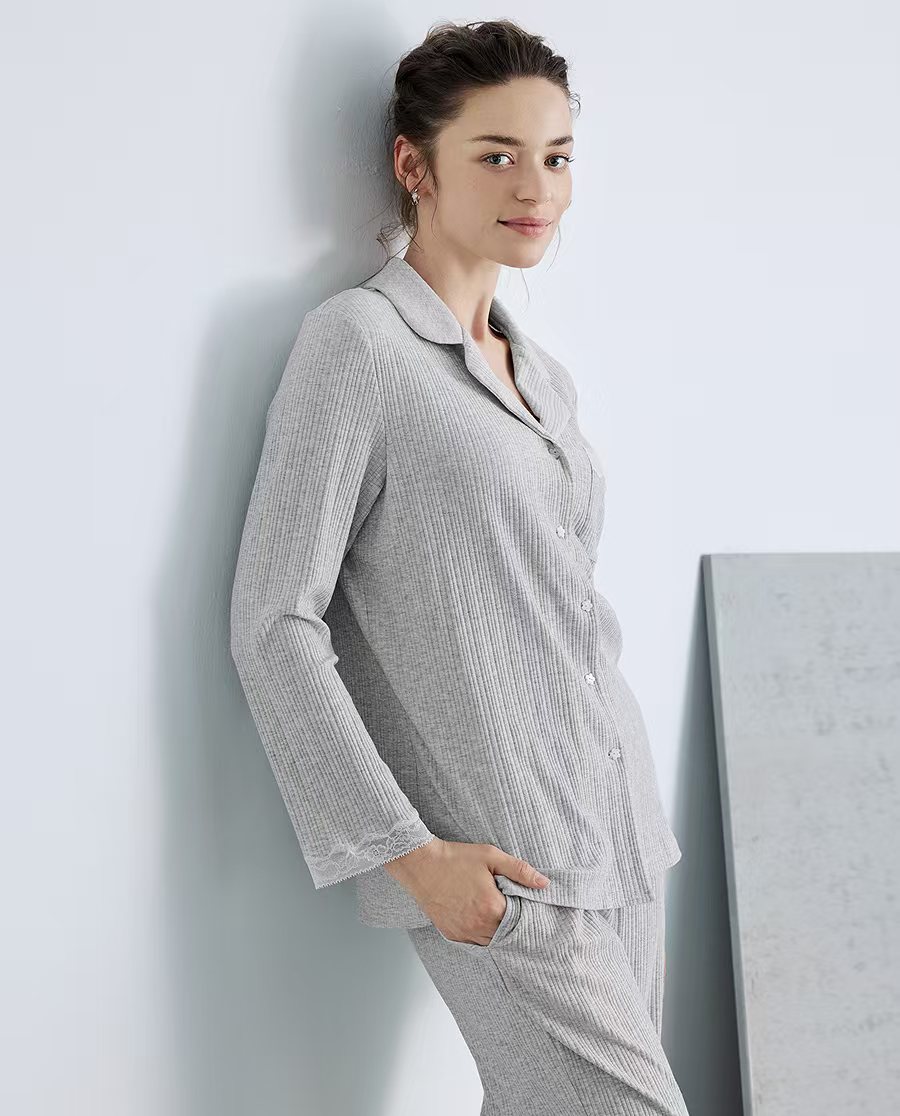 爱慕 25AW舒棉翻领开衫长袖分身套装AM46B651