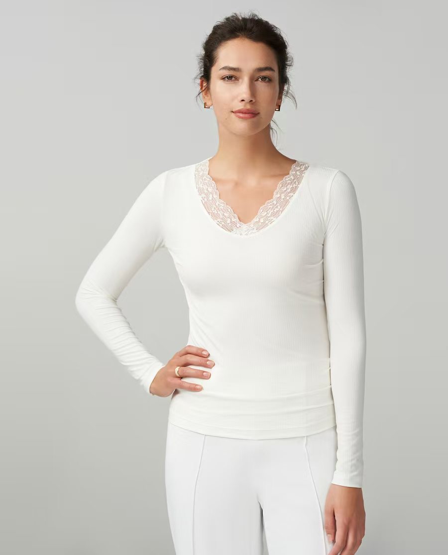 爱慕螺纹暖柔V领长袖上衣打底AM728822