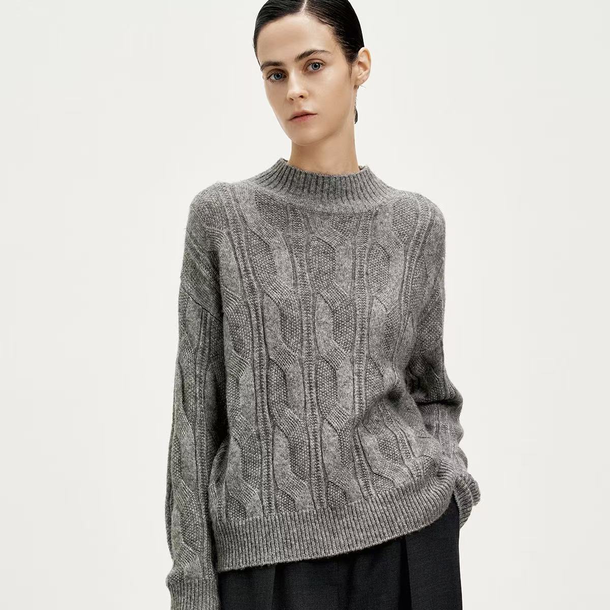 【双十一特供】Re-BLUE高智灰色半高领针织衫