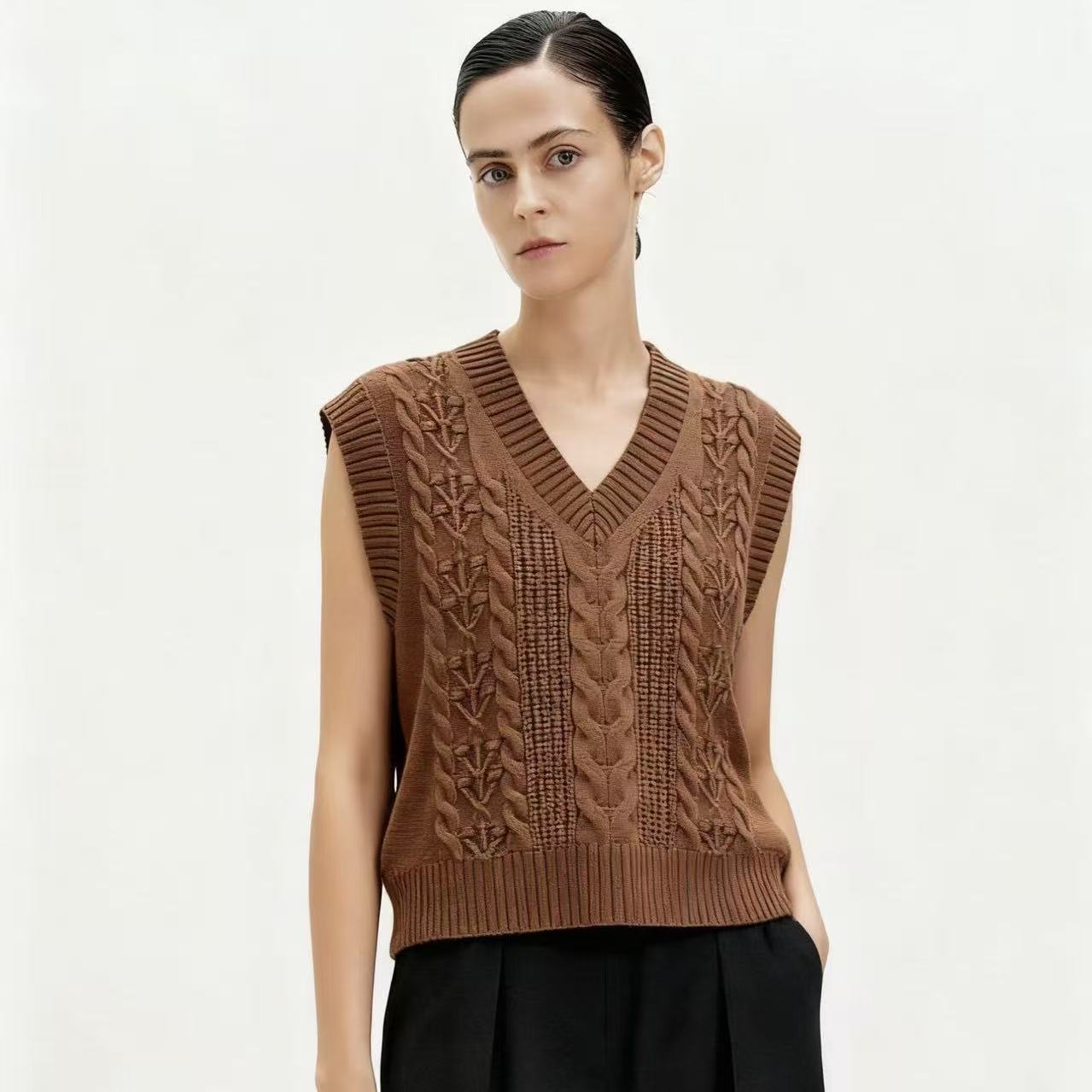 【双十一特供】Re-BLUE落日棕绞花针织背心