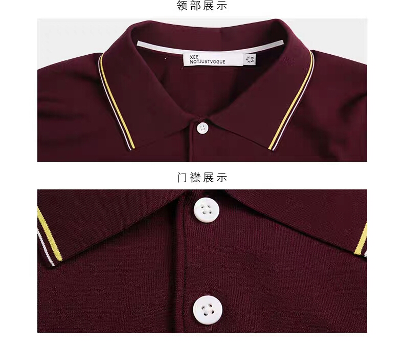 XEE商场同款商务休闲酒红色POIO衫纯色简约短袖T恤