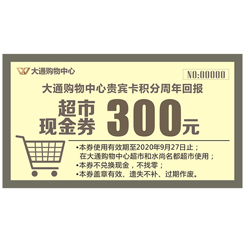 大通购物中心超市300元现金券