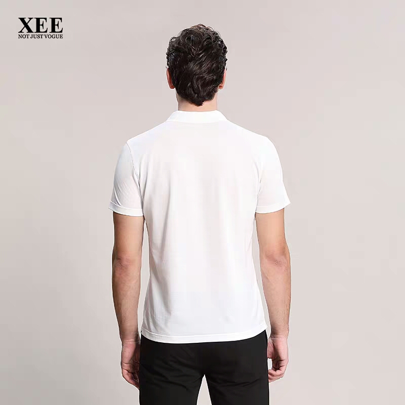 XEE商场同款都市欧美白色POIO衫百塔简约翻领短袖男T恤