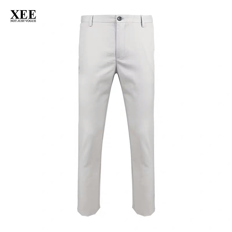 XEE商场同款浅灰色松紧裤腰商务休闲男裤简约合体薄长裤夏