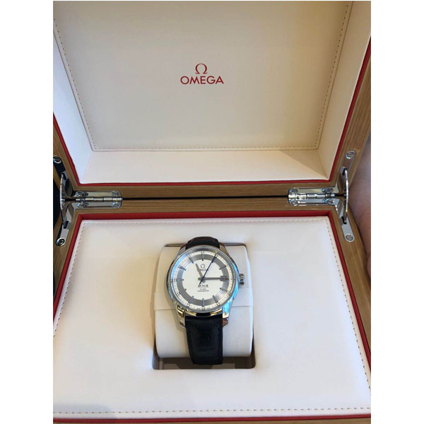欧米茄碟飞白面皮带机械男表