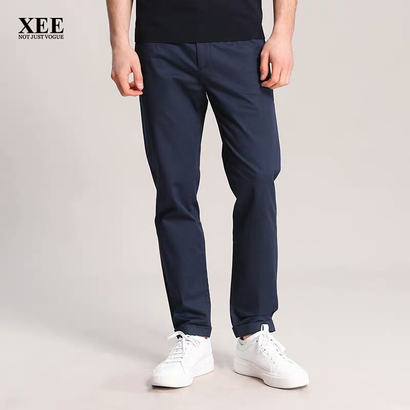 XEE商场同款男士藏青色直筒休闲百搭长裤