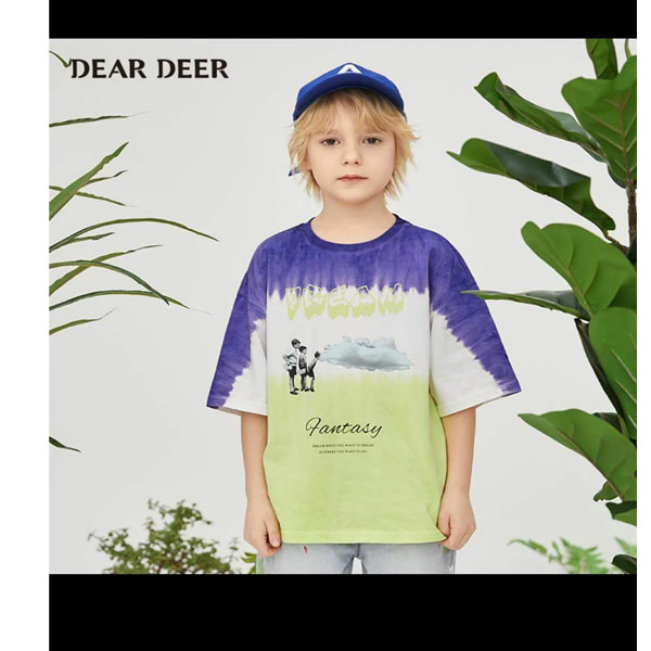 迪迪鹿2020新款渐变撞色短袖T恤