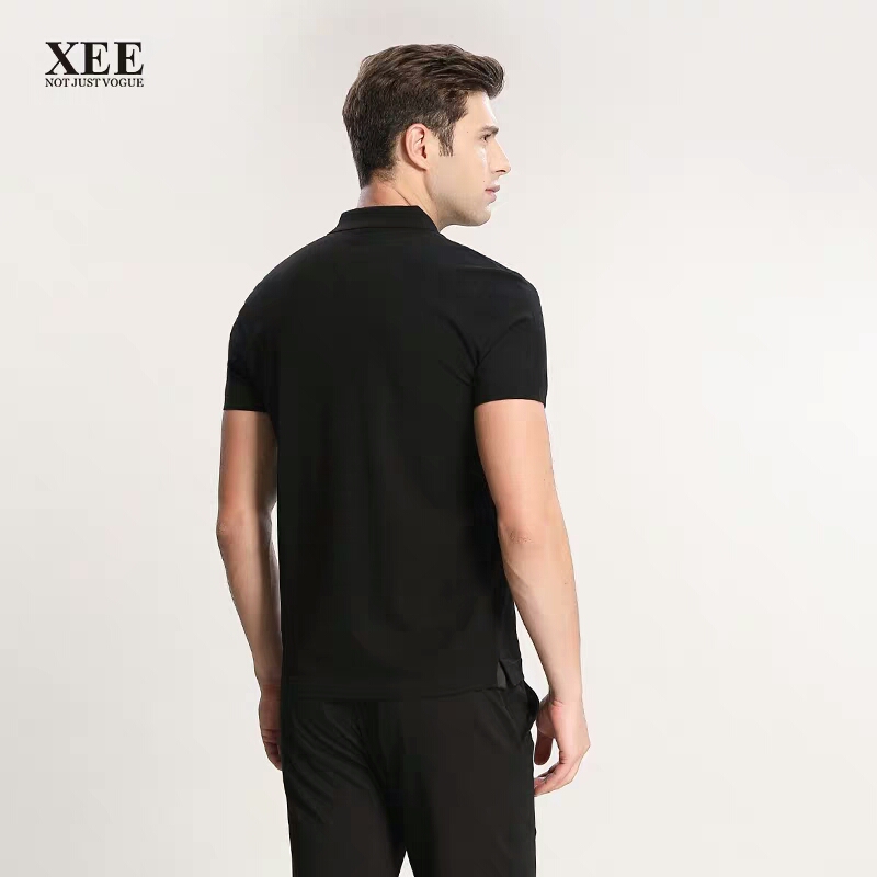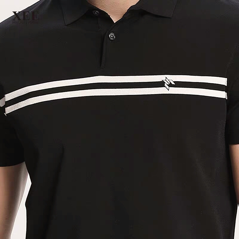 XEE商场同款黑色条纹简约翻领POIO衫
