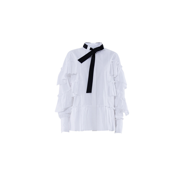 玛丝菲尔素20秋白色宫廷风荷叶边白衬衫