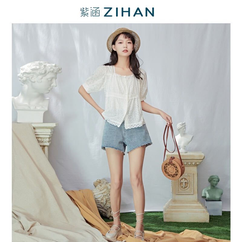 紫涵 陶尔米纳の街角 锁骨方领设计感小众复古衬衫