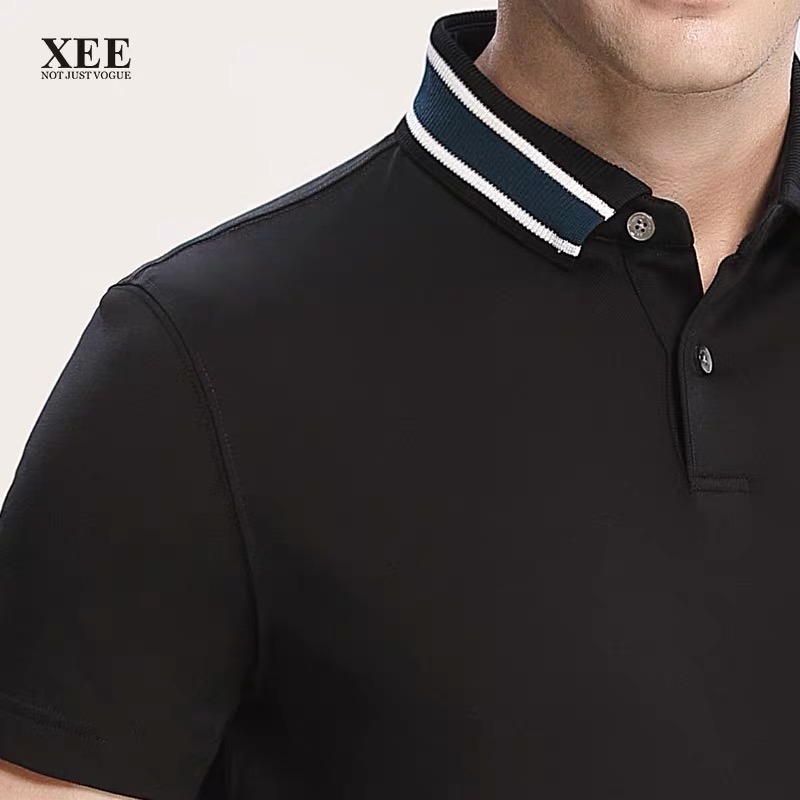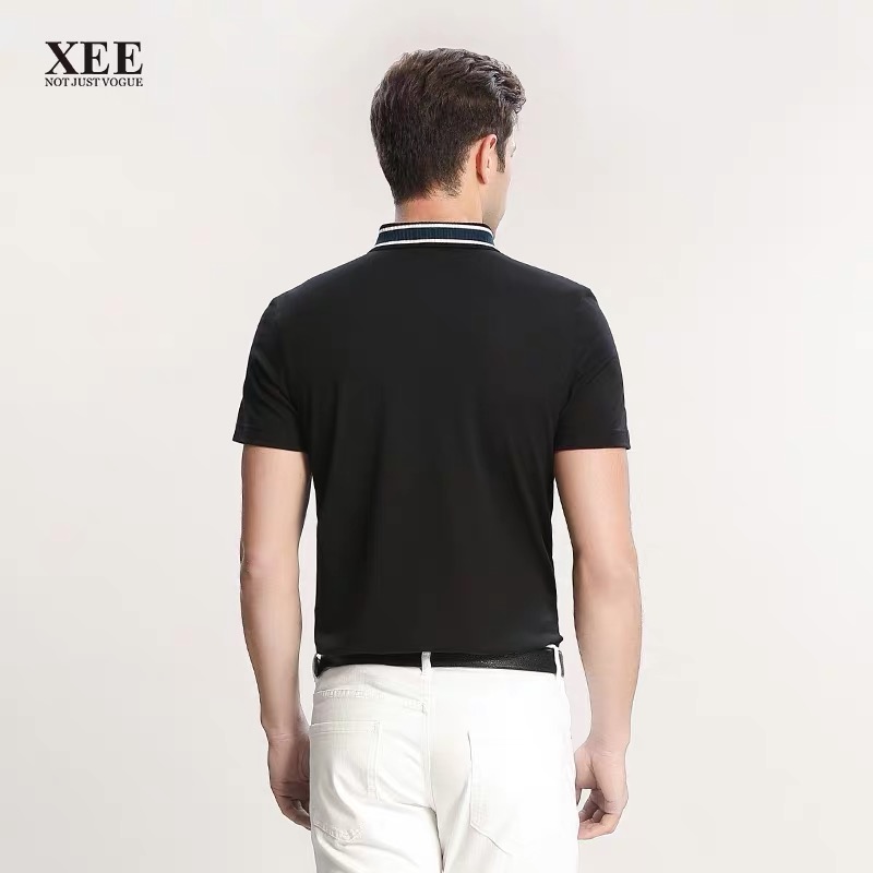 XEE商场同款男士黑色撞色领纯棉商务POIO衫