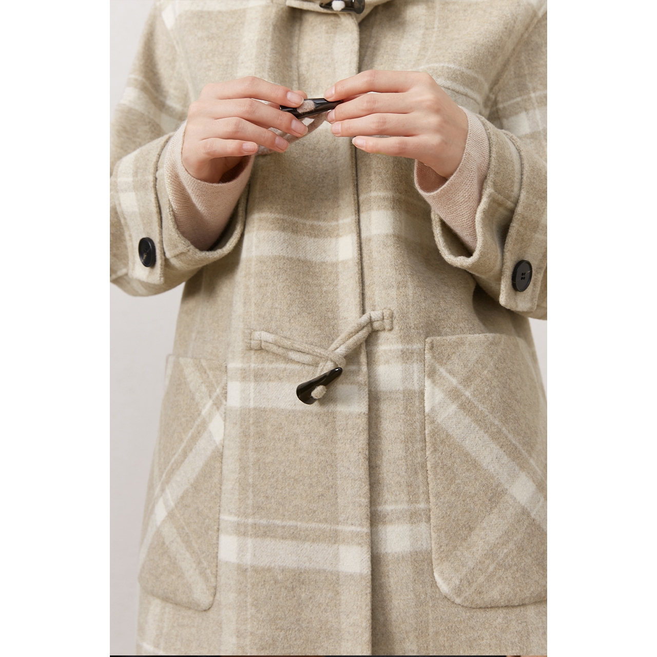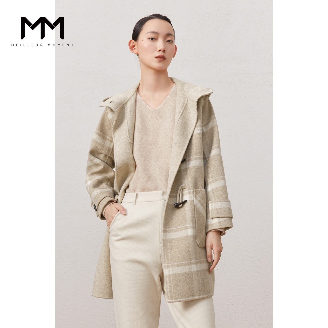 商场同款MM麦檬2020冬季新款格纹学院风毛呢大衣