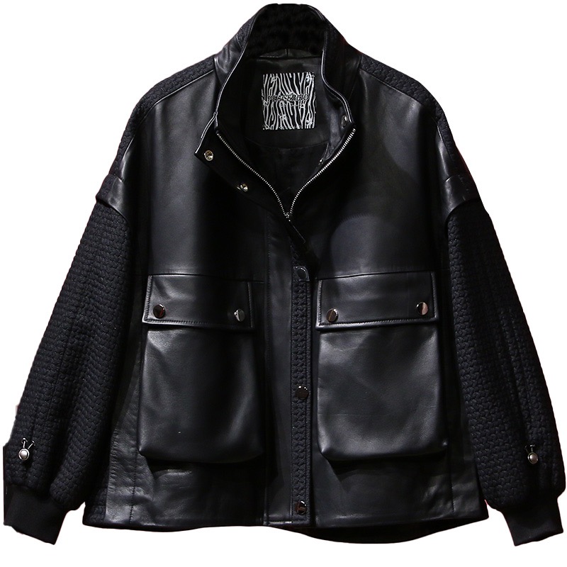 太平鸟2021春装新品酷美风绵羊皮革外套