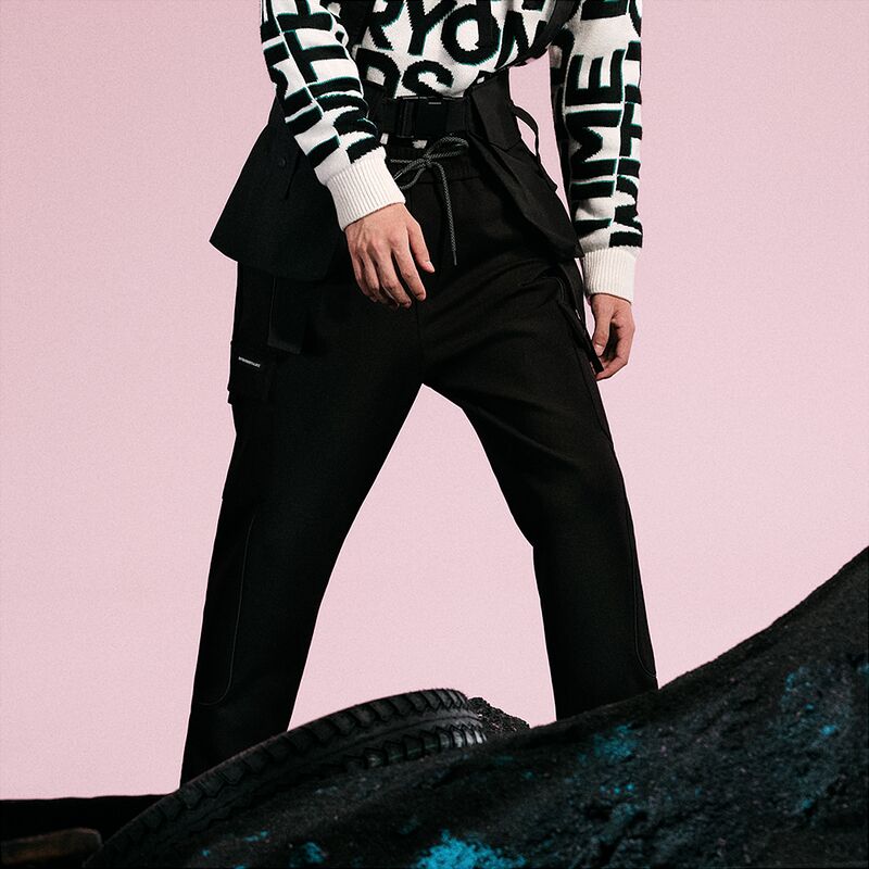 GXG男装冬季商场同款黑色收口工装长裤
