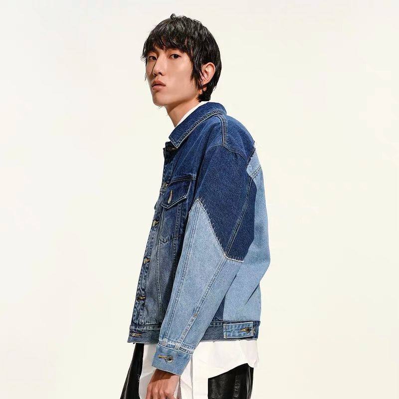 GXG男装生活系列春季撞色拼接牛仔夹克外套