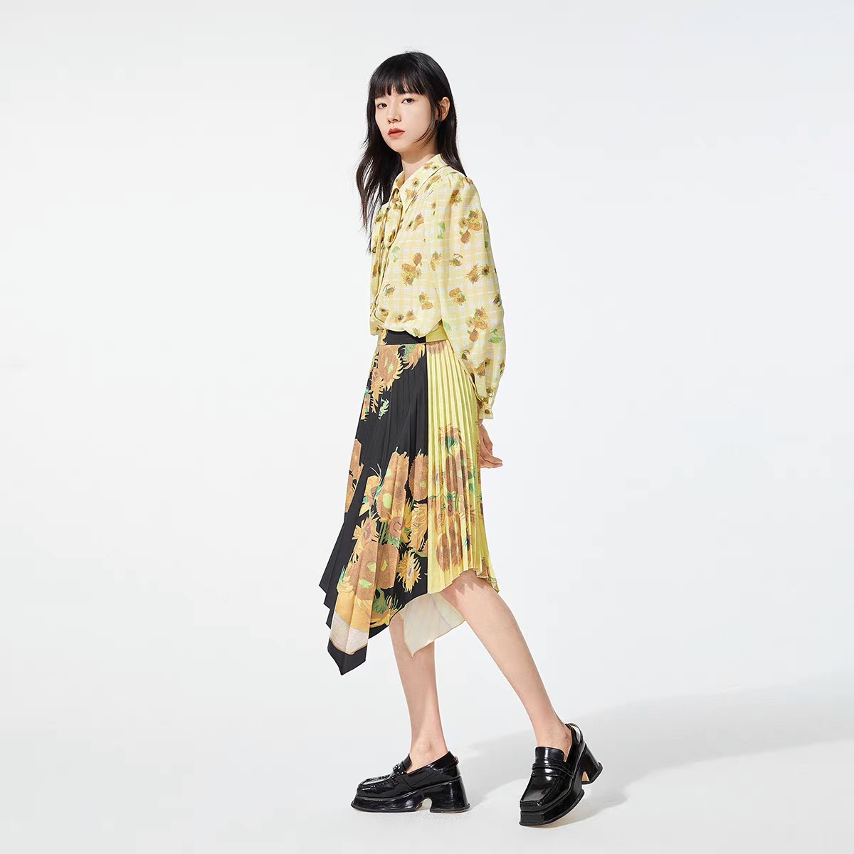 太平鸟梵高博物馆联名压褶长裙半身裙