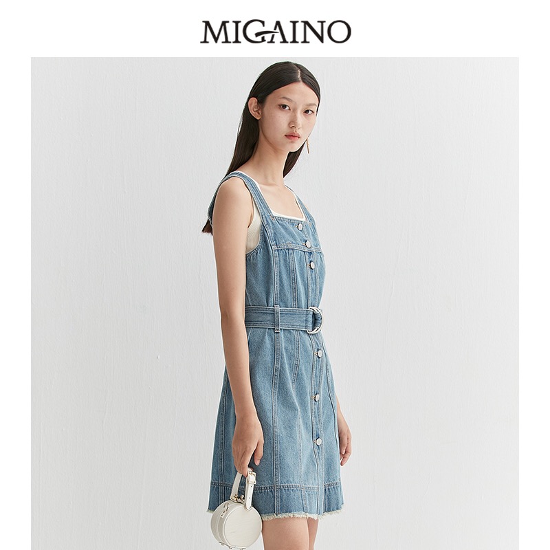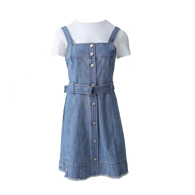 曼娅奴2021牛仔背带连衣裙套装