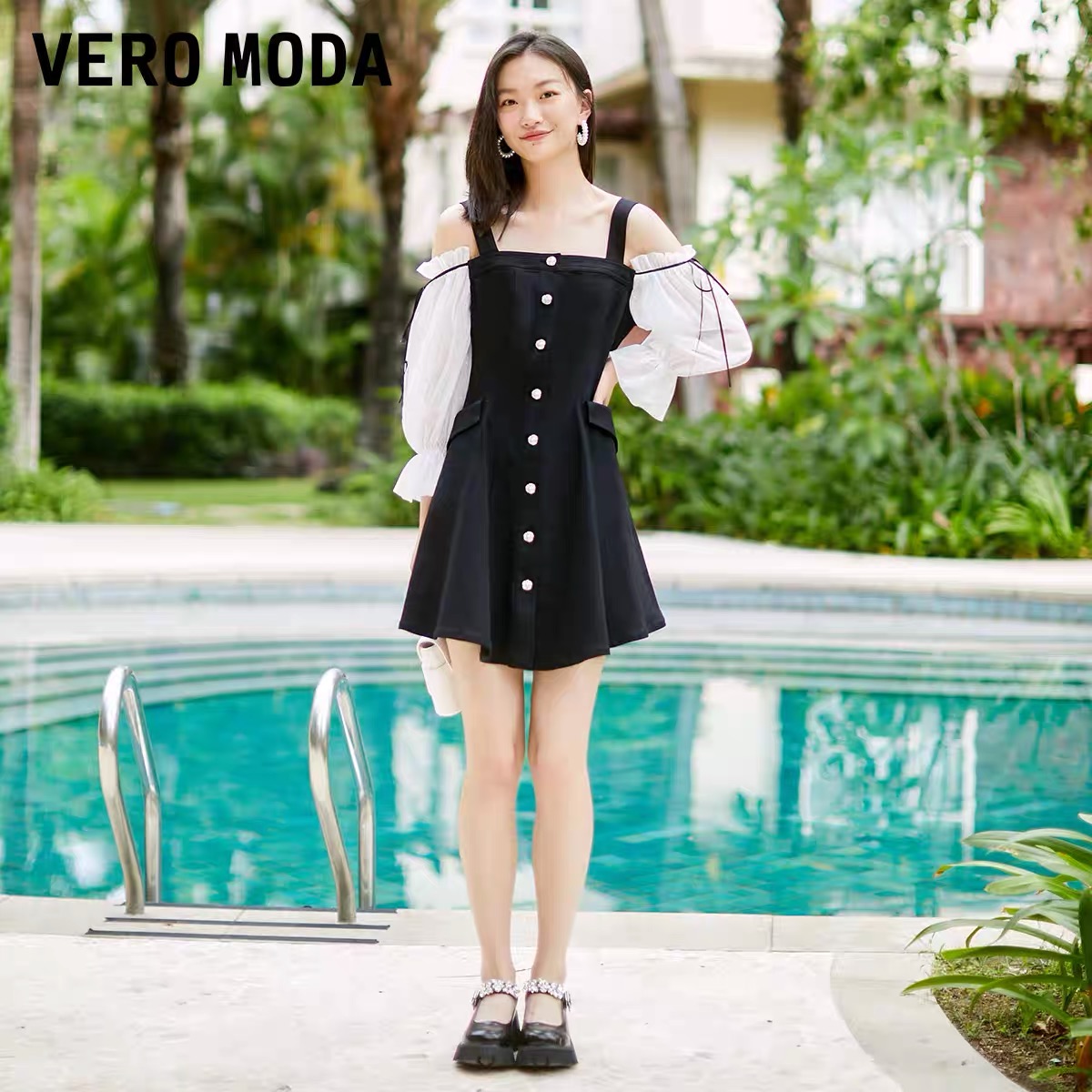 Vero Moda2021春夏新款复古浪漫网纱牛仔仙女连衣裙