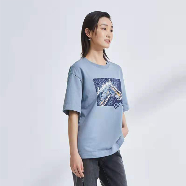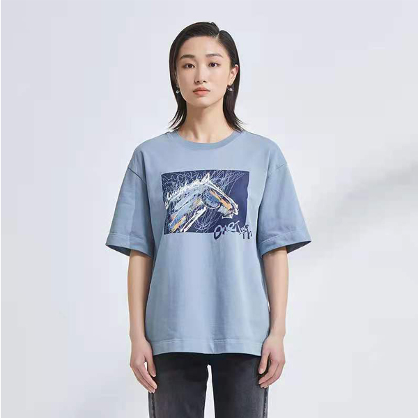 OTT服饰2021夏新品圆领宽松马头印花T恤