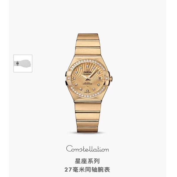 欧米茄星座27MM同轴机械金表女款
