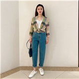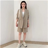 ICICLE之禾女装2023夏季新款全棉色织格双排扣西装